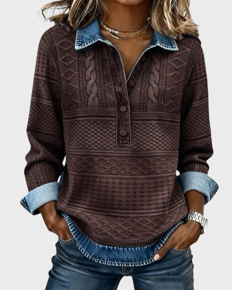 Elise | Halenka s efektem pleteniny a džínovými detaily
